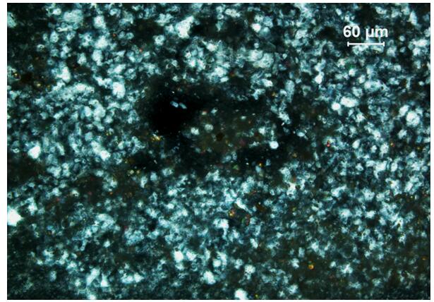 照片2 由脫水作用形成的再生微粒石英聚合成團(tuán)塊狀集合體(中部)