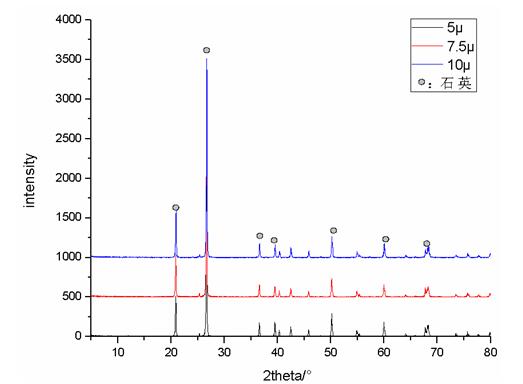 將樣品破磨至-0.2mm的細(xì)度,采用比重瓶法測得樣品的密度為2.6631克/厘米3,這與石英的理論密度基本一致。